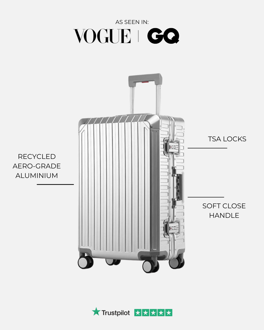 Our suitcase is crafted from recycled aero-grade aluminium and built to move through a lifetime of journeys.